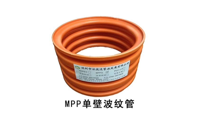 MPP單壁波紋管是以聚丙烯(MPP)為主要原材料,采用復合增強改性特殊配方和加工工藝制成的新型結構壁料管道,具有結構新穎、強度高、耐溫性能好、施工簡便和節省費用等一系列優點。作為開挖用電力管的行業新品,MPP單壁波紋管解決了工藝成型困難和材料復合增改性等行業難點,創造性地設計了新穎的產品結構和紐扣式連接方式,因此,該項技術具有廣闊的應用前景。